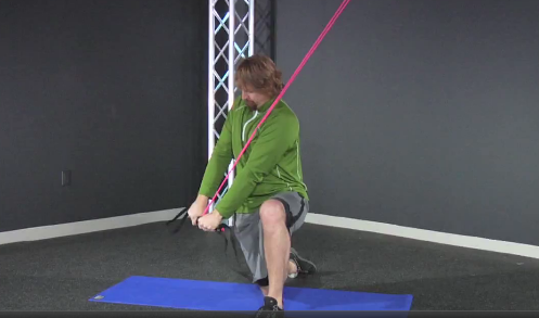 If you want to take the chop bounce pass workout to the next level, then you need to follow the same testing and training format as above while in a hover position. The hover position can only be performed from half kneeling and requires you to hold stable posture in the half kneeling position with the lower knee a few inches off of the floor or ground. You will not have much endurance to hold this position but with practice it will improve. Use your core, not your quads, to hold yourself up. Note differences between the left and right side when you test in this position. When you workout, you can mix your exercises by doing a hover on the first set and a basic knee down throws on the next few sets.