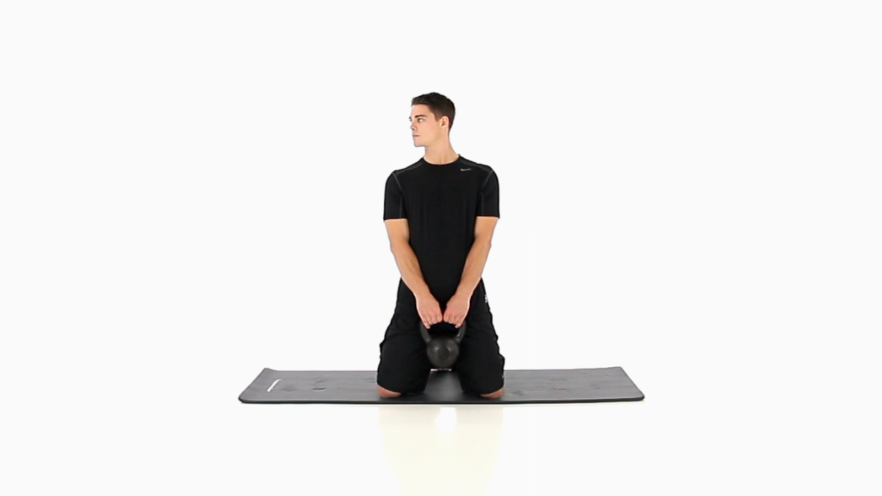 Turn the head and shoulders to the right and left in a smooth and controlled manner while moving the KB in that direction. (if you can turn far enough you may move the KB to the outside of the hip you are turning over). The aim is to perform this turns while maintaining "perfect posture" Begin with small turns and slowly add range but do not push into discomfort or increase the range, so you have to compensate in any way.