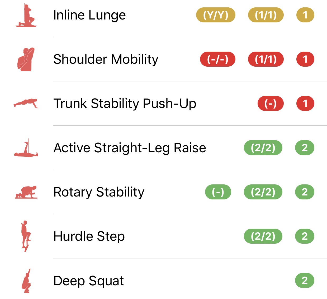 In this case, we just need to look at our program and start to adjust by removing any exercises that are contraindicated based on the score.